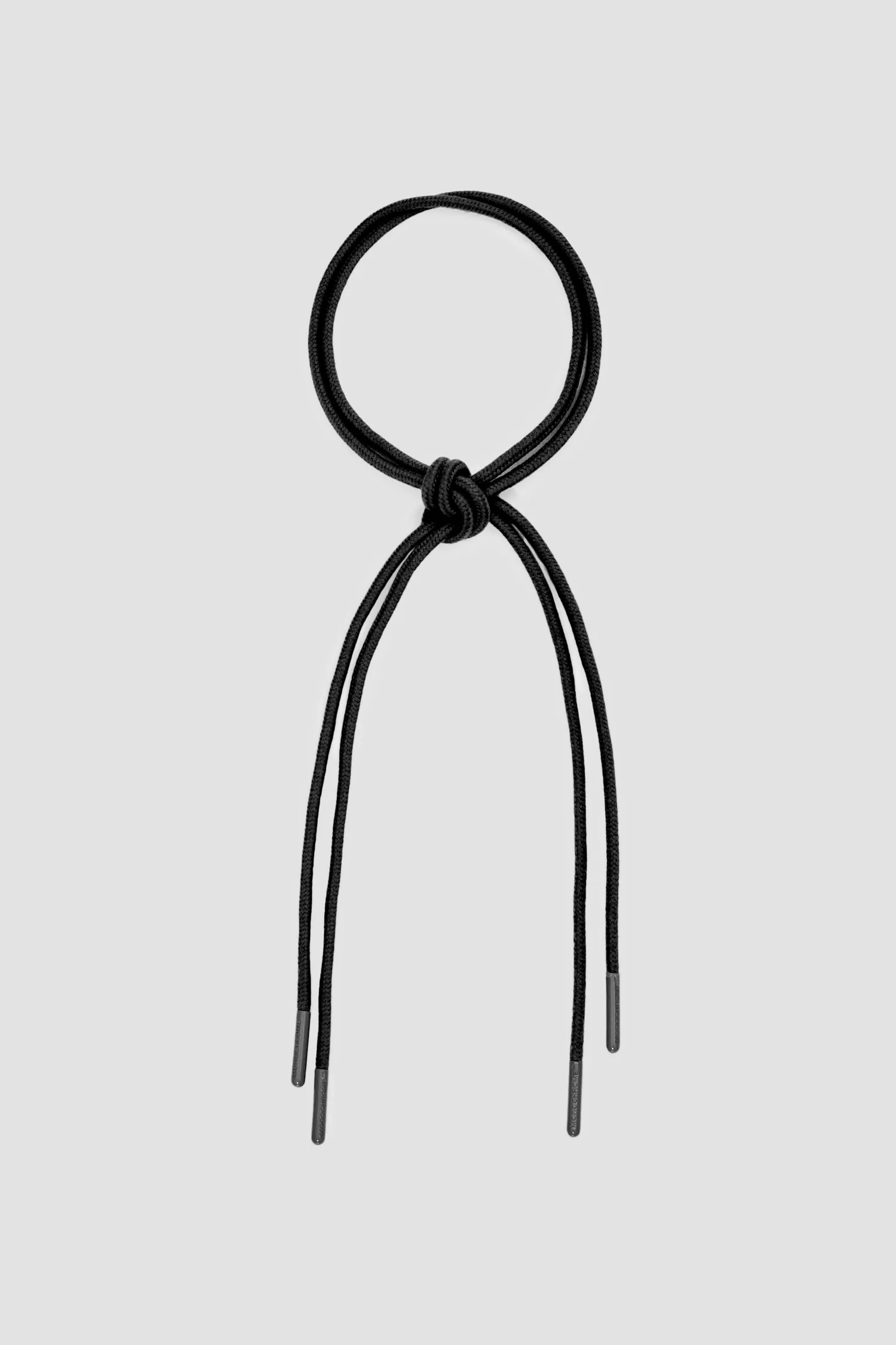 Украшение на шею в фирменном стиле MONOCHROME. Комплект из двух шнурков в черном цвете. Длина каждого шнурка 100 см. Украшены металлическими наконечниками с логотипом. Упаковка в брендированный zip lock пакет.