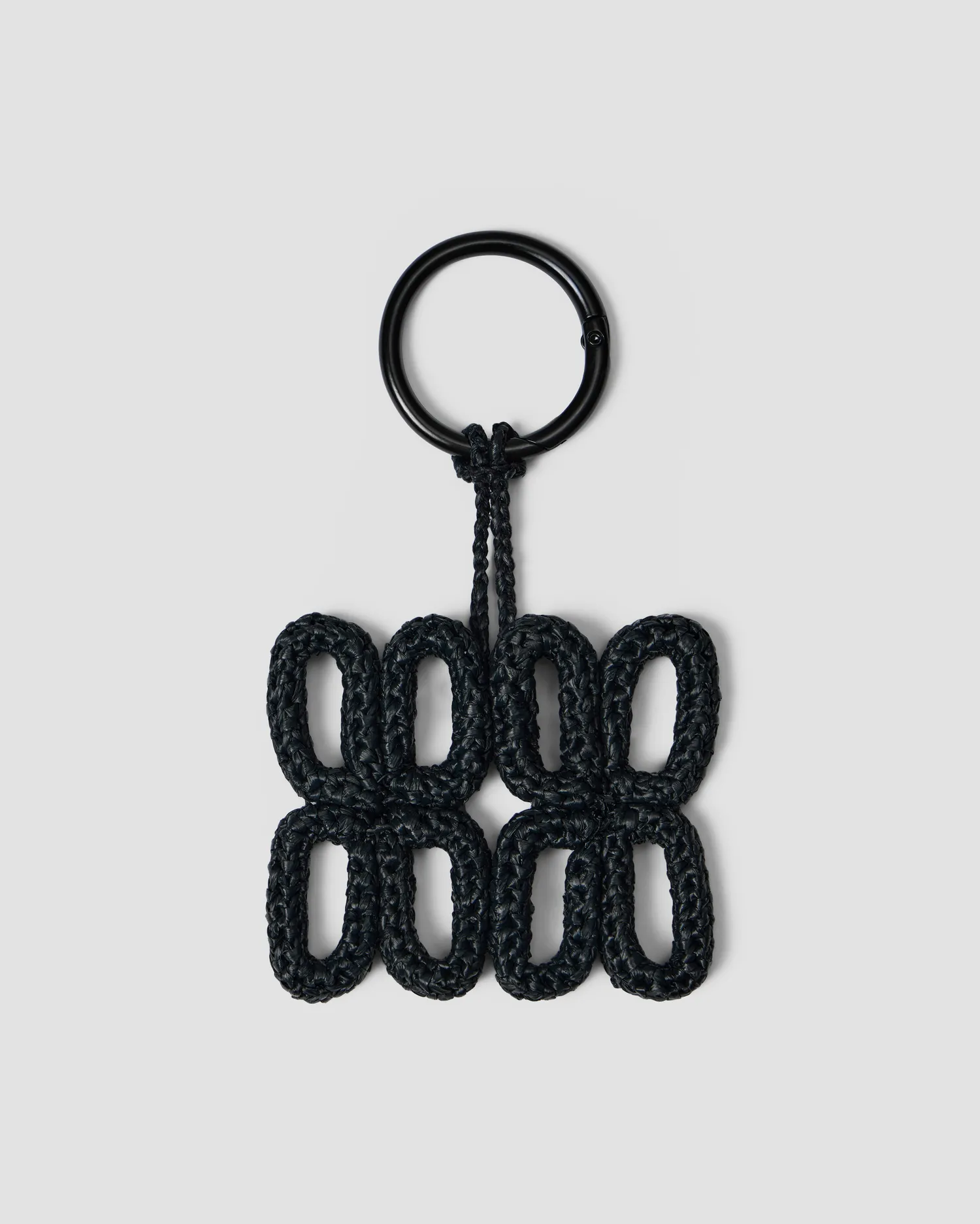 Брелок в виде элемента фирменного паттерна MONOCHROME. Связан вручную из рафии (сушеное пальмовое волокно). В комплекте идет кольцо карабин черного цвета. Упаковка в брендированный zip lock пакет. Так как каждый брелок сделан вручную, длина изделий может различаться на 1-2 см.