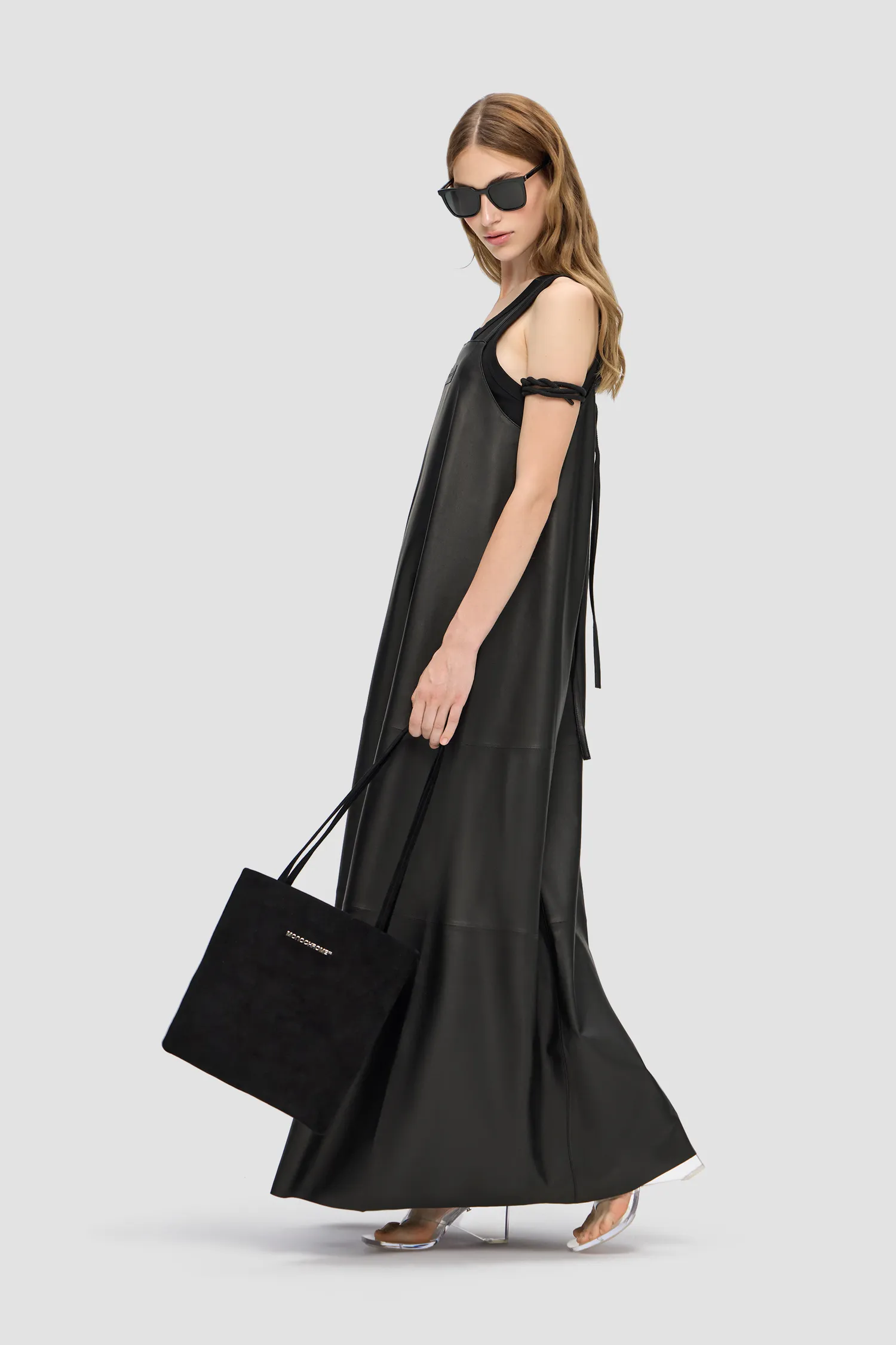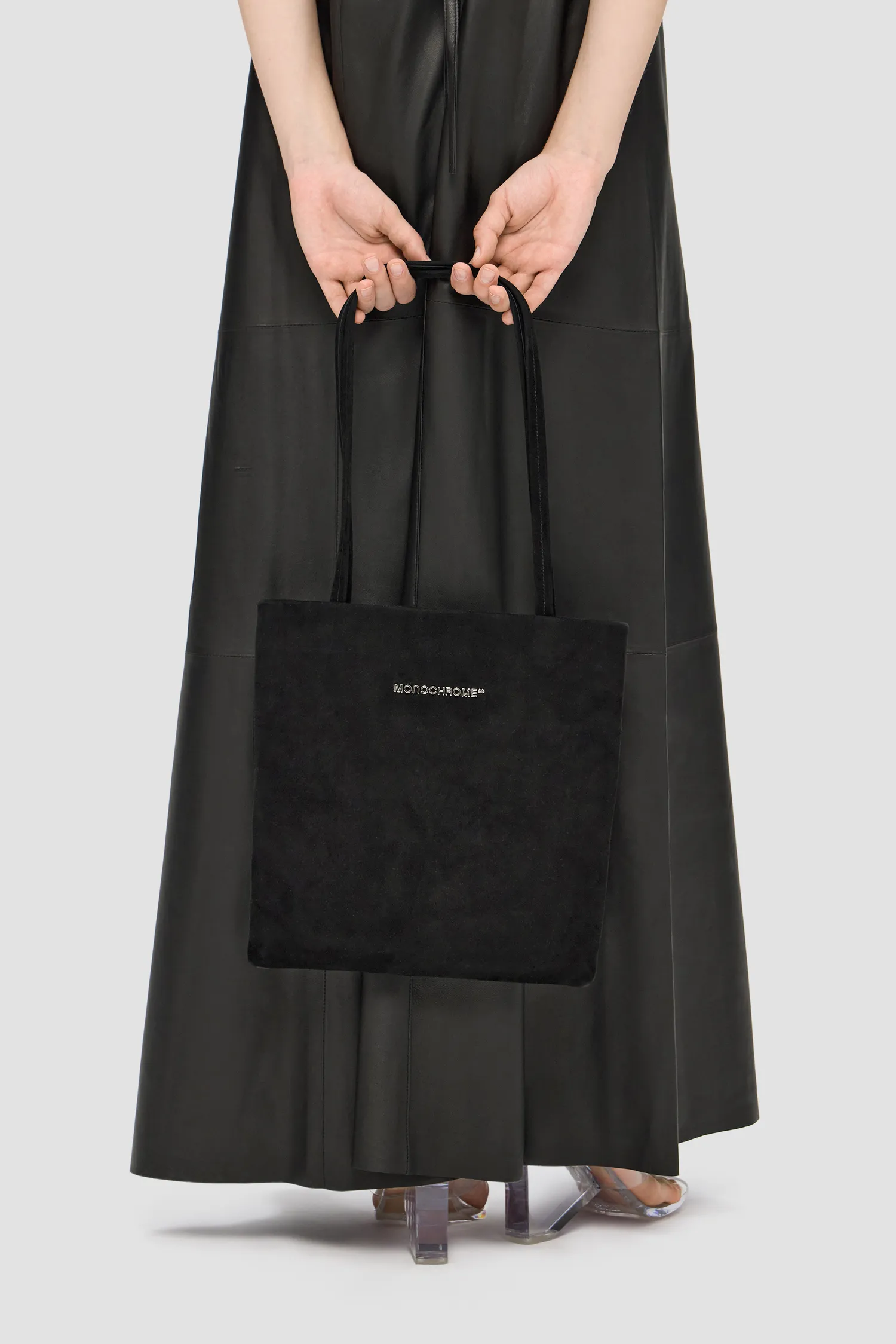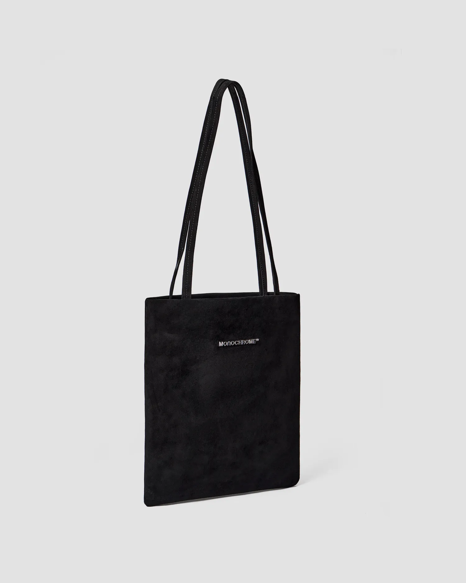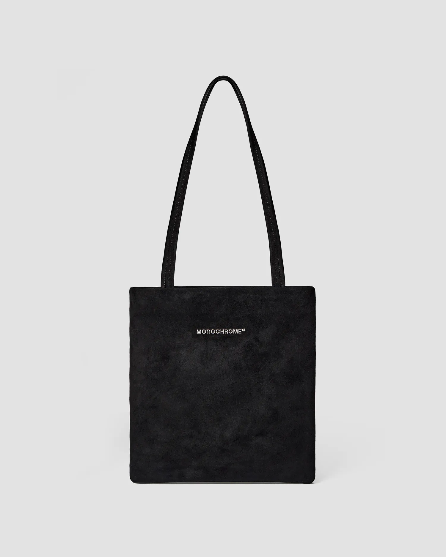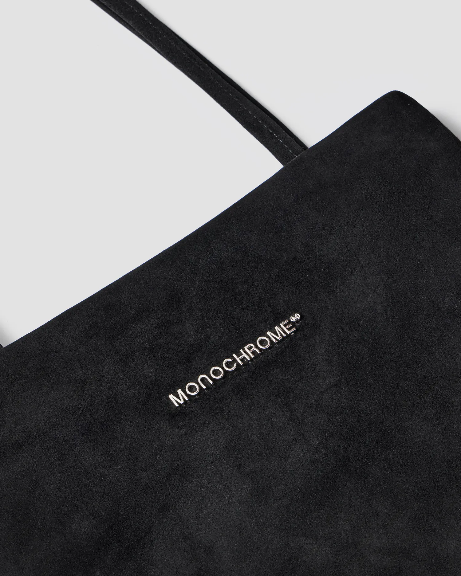 Тонкая сумка из натуральной замши в черном цвете. Металлический логотип MONOCHROME. Кожаная нашивка с фирменным паттерном с внутренней стороны. Внутренний карман на молнии. Пуллер на молнии в виде фирменного паттерна MONOCHROME. Упакована в розовый пыльник и подарочную коробку.