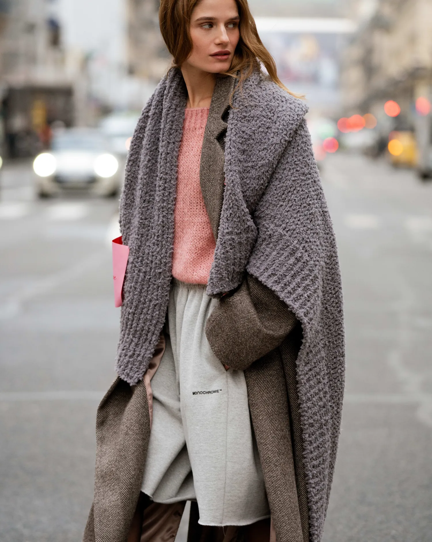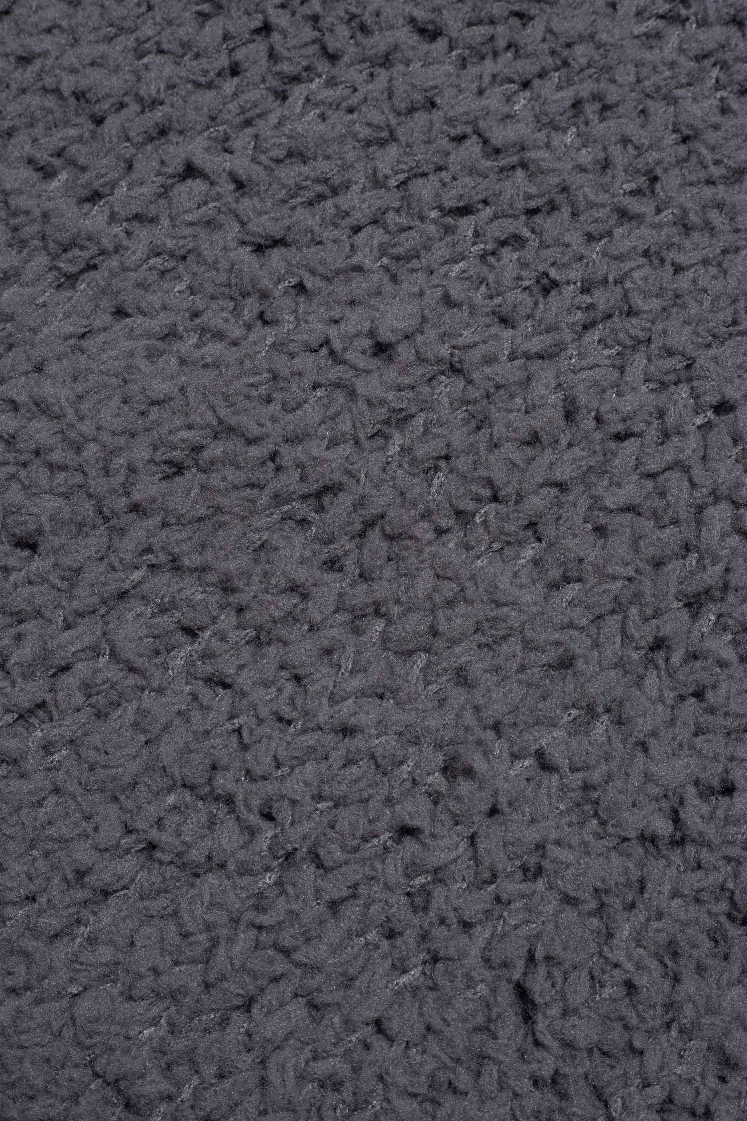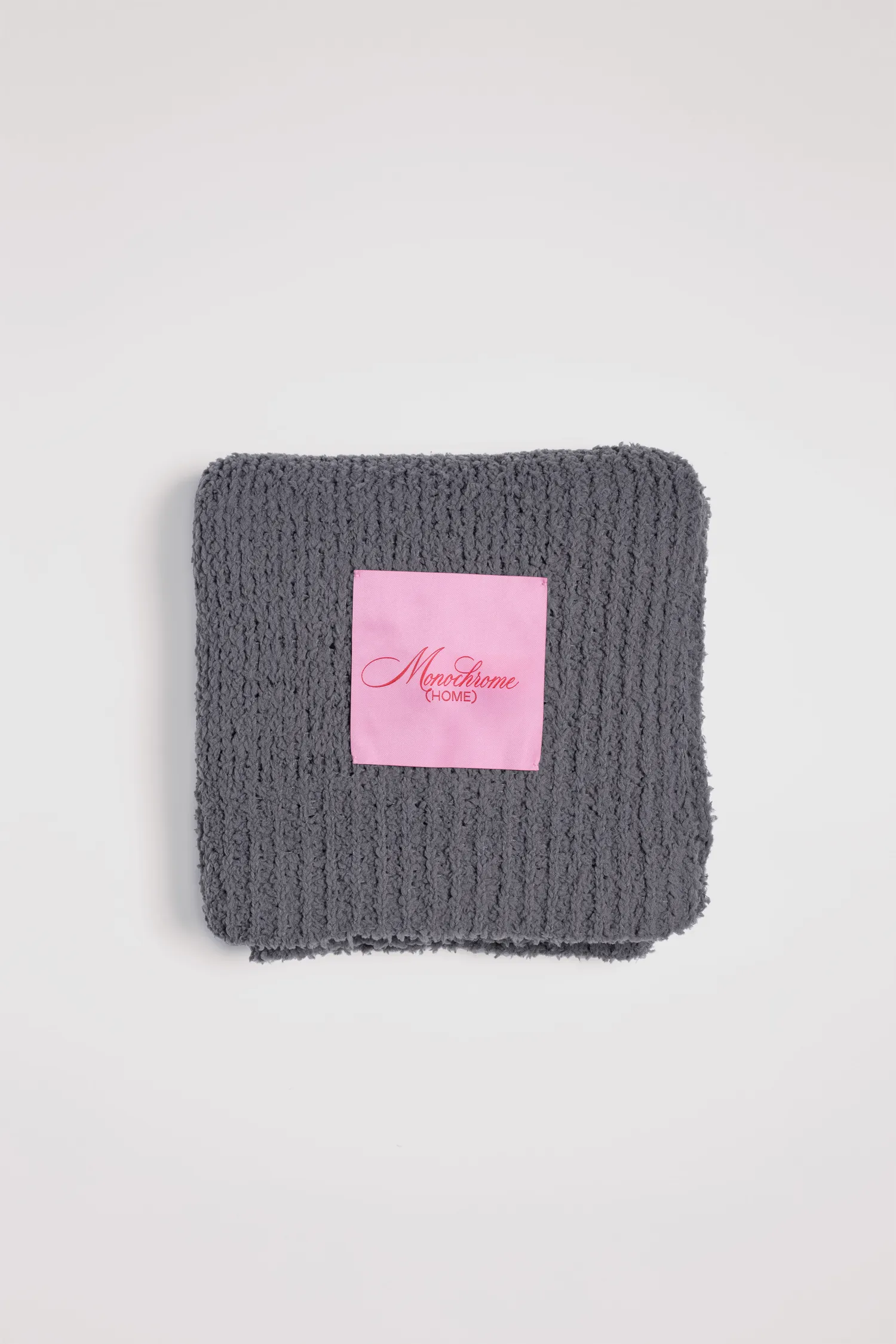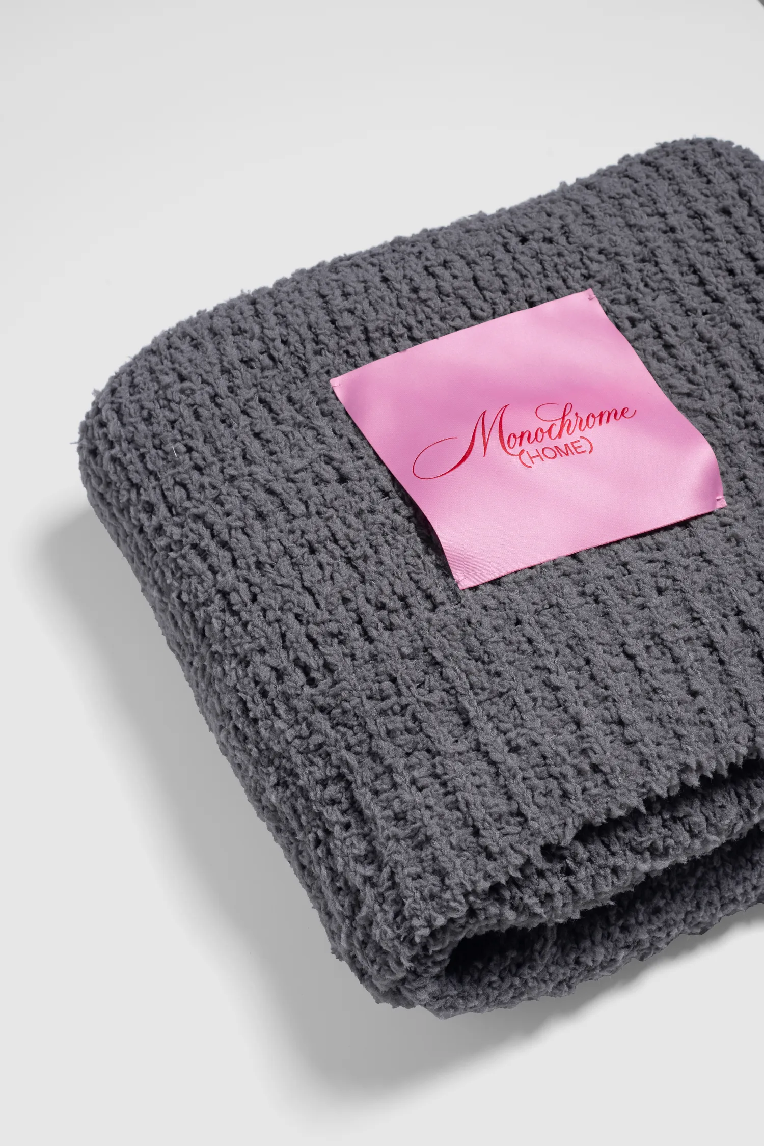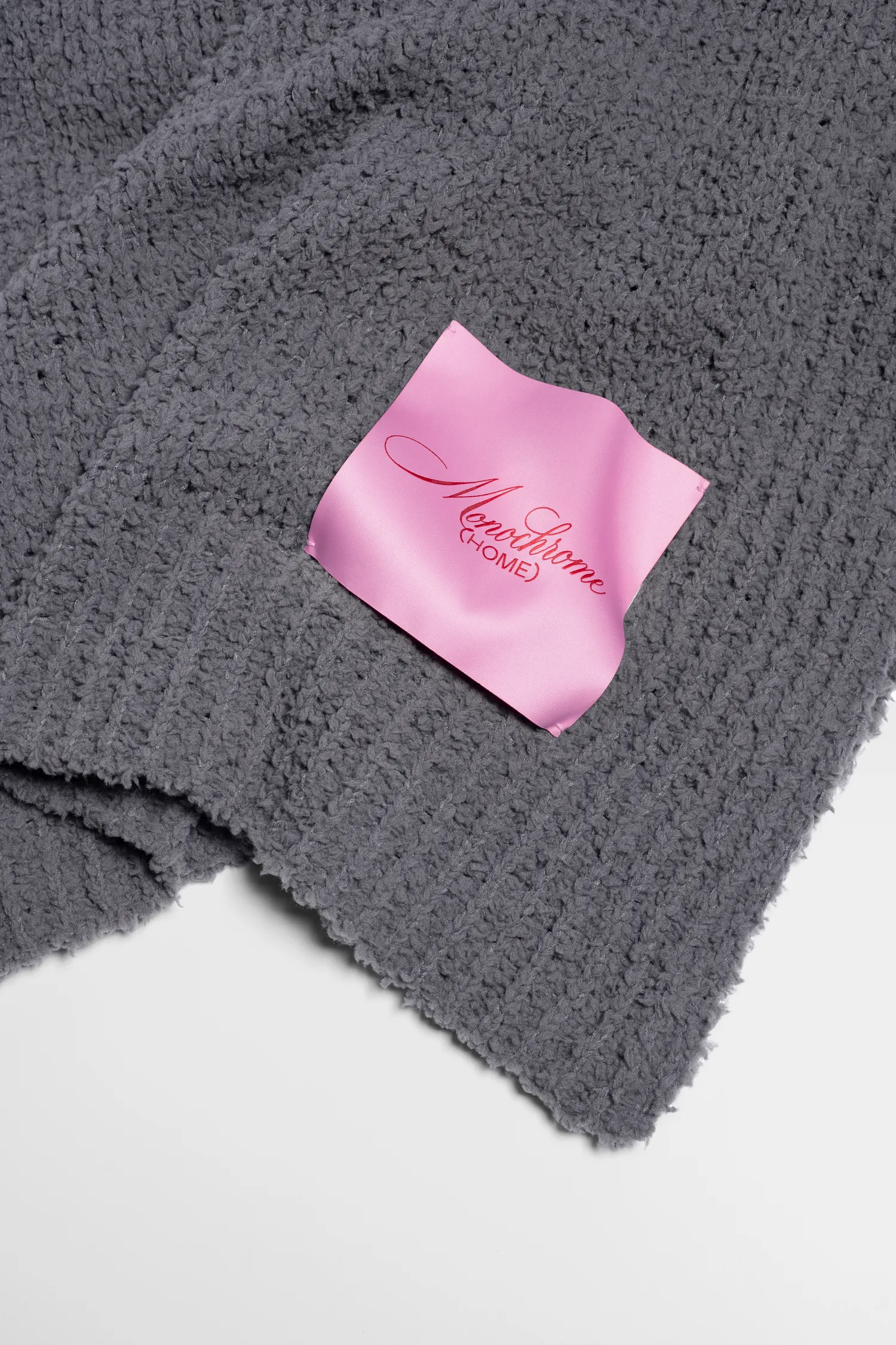 Вязаный плед серого цвета с изящным вязальным узором. Нашивной жаккардовый лейбл розового цвета. Размер 154*148 см. Изделие износостойкое, не теряет форму в процессе эксплуатации. Упаковка в крафтовую коробку,