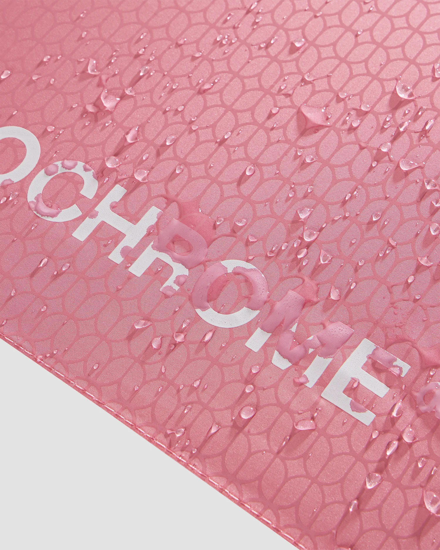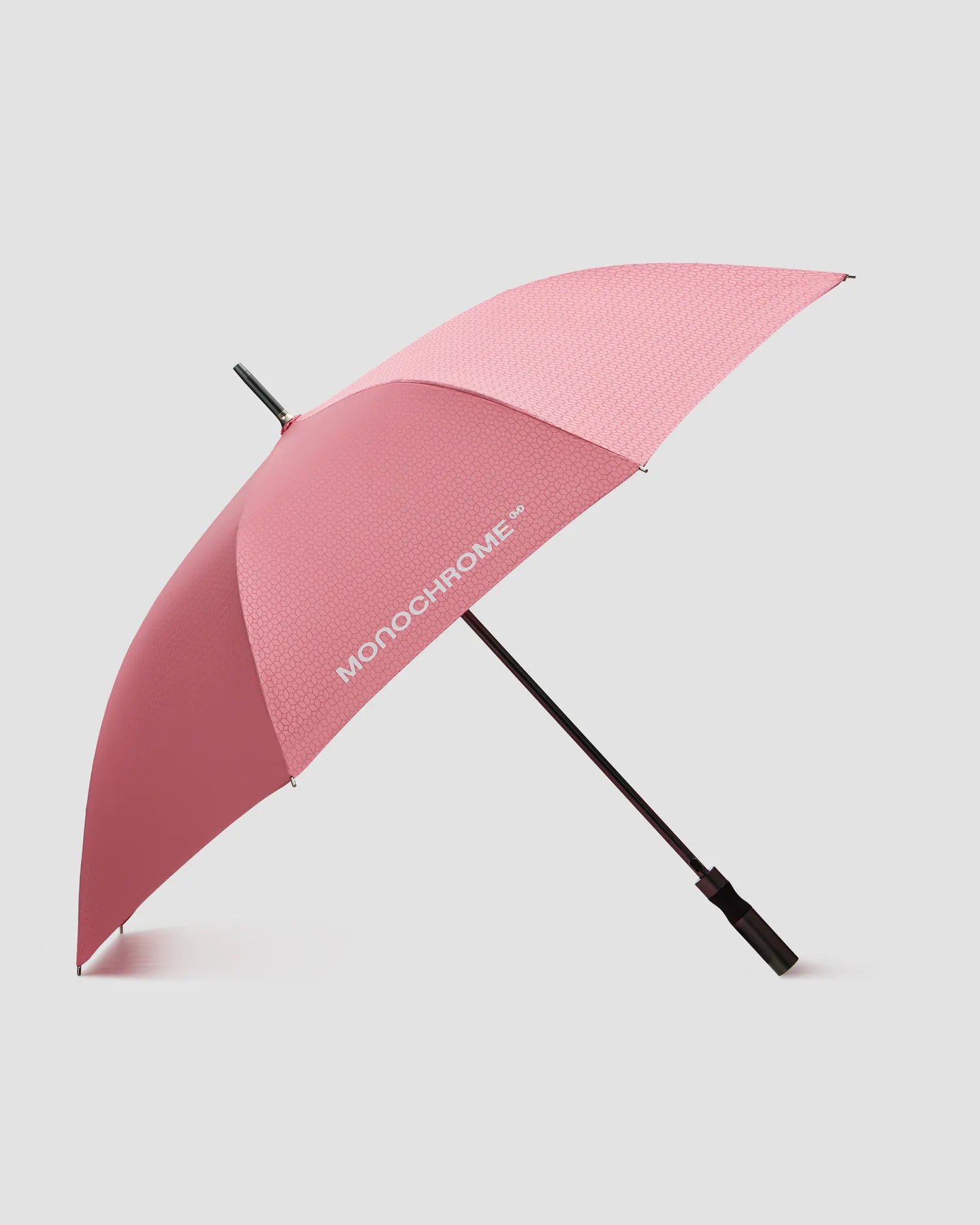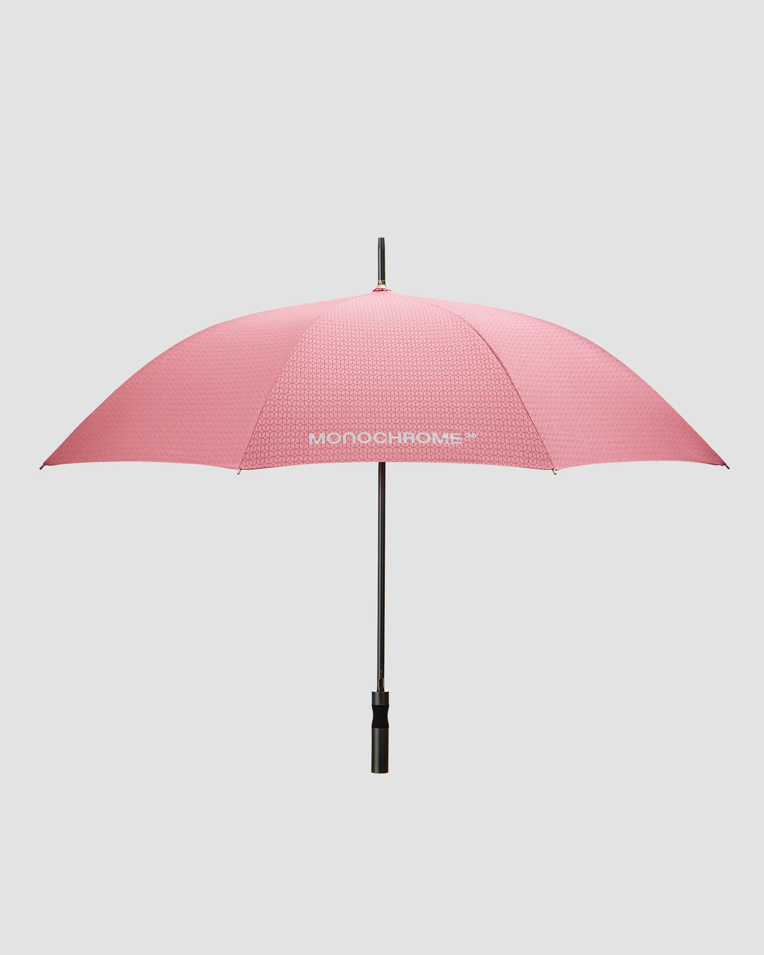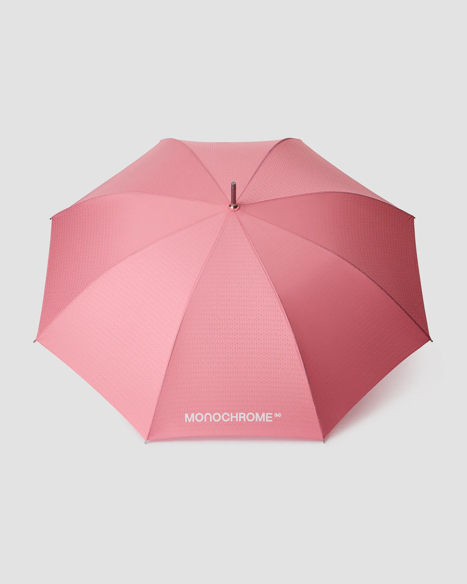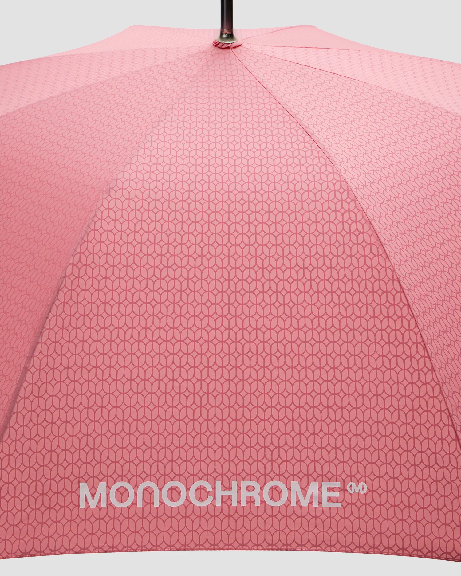 Большой зонт-трость розового цвета с фирменным паттерном MONOCHROME. Механизм открытия и закрытия с помощью кнопки полуавтомат. Водоотталкивающее покрытие. При намокании фирменного логотипа MONOCHROME, буквы изменяют цвет. Система антиветер. Удобный чехол с лямкой позволяет носить зонт на плече, оставляя руки свободными. Чехол изготовлен из непромокаемой ткани. Стальной каркас, 8 спиц. Жаккардовый флажок розового цвета внутри зонтика. Фирменный логотип на ручке. Плотность ткани: 270. Упаковка в розовую крафтовую коробку.