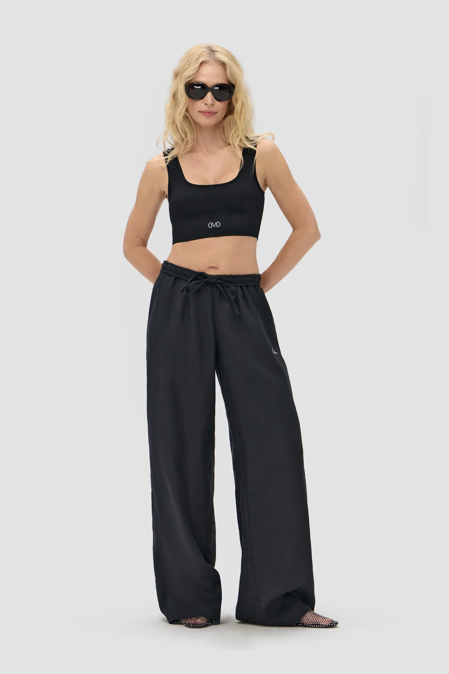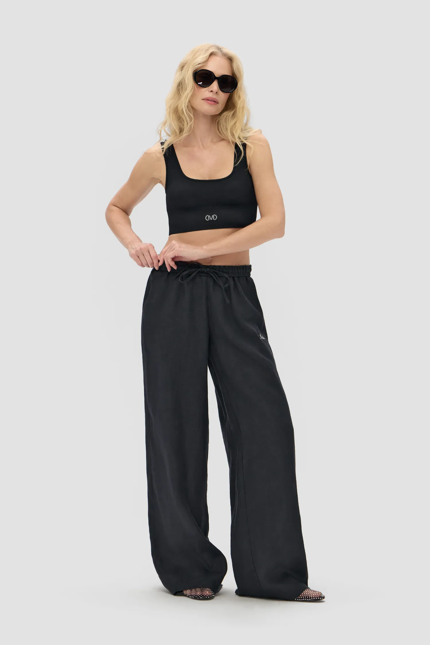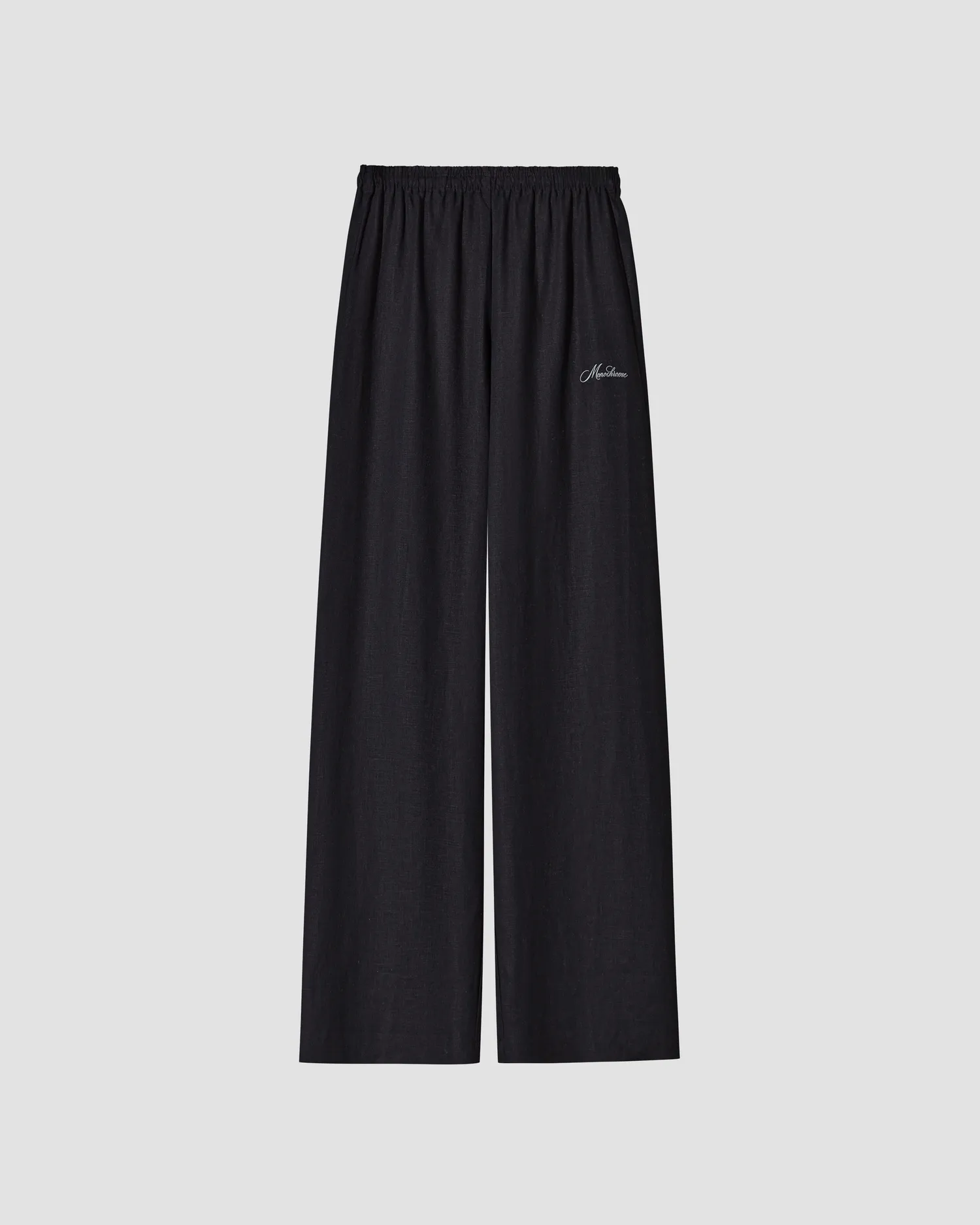 Прямые брюки из 100% льняного полотна. Пояс на резинке. Рельефный логотип MONOCHROME в области бедра. Упаковка в подарочную коробку. Сделано в России на собственной мануфактуре MONOCHROME.