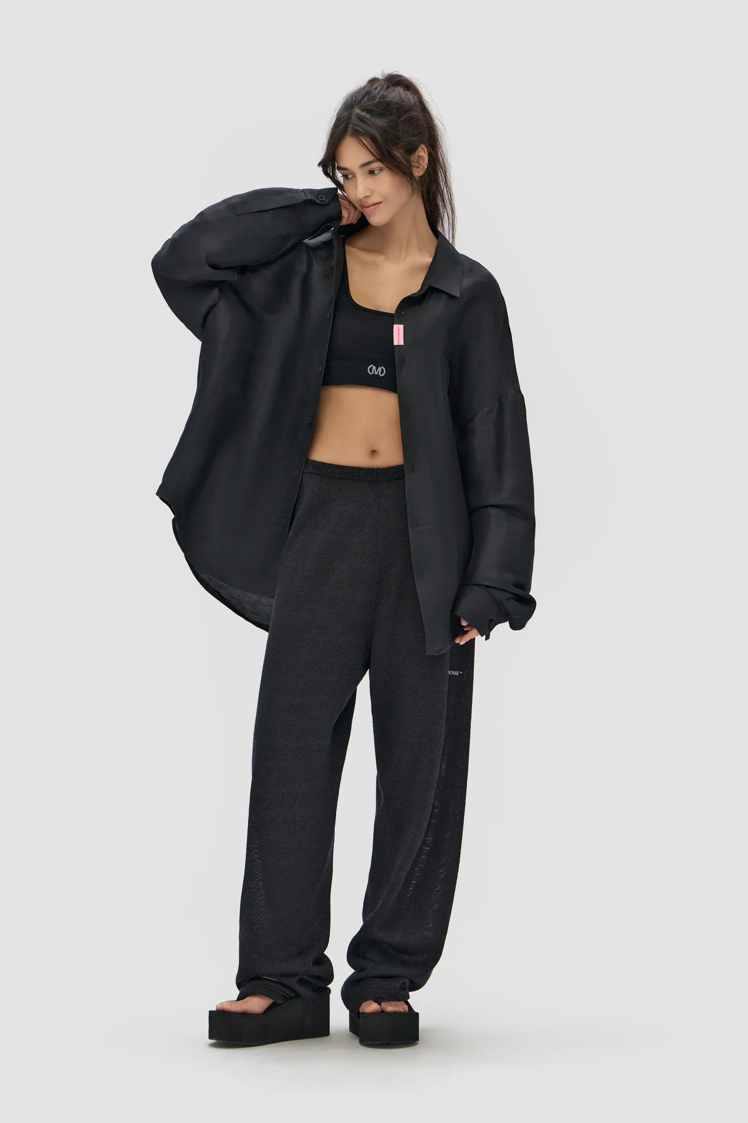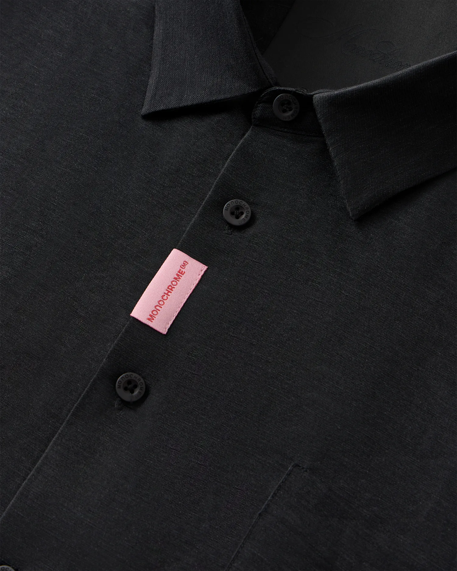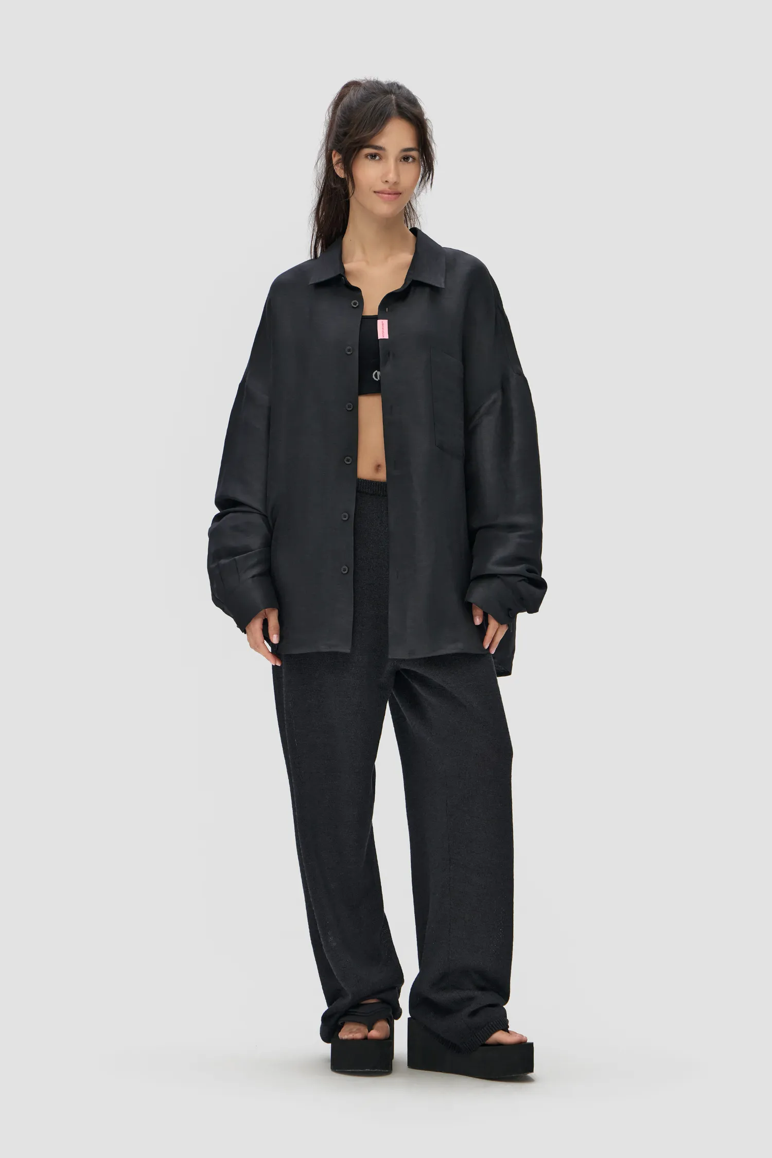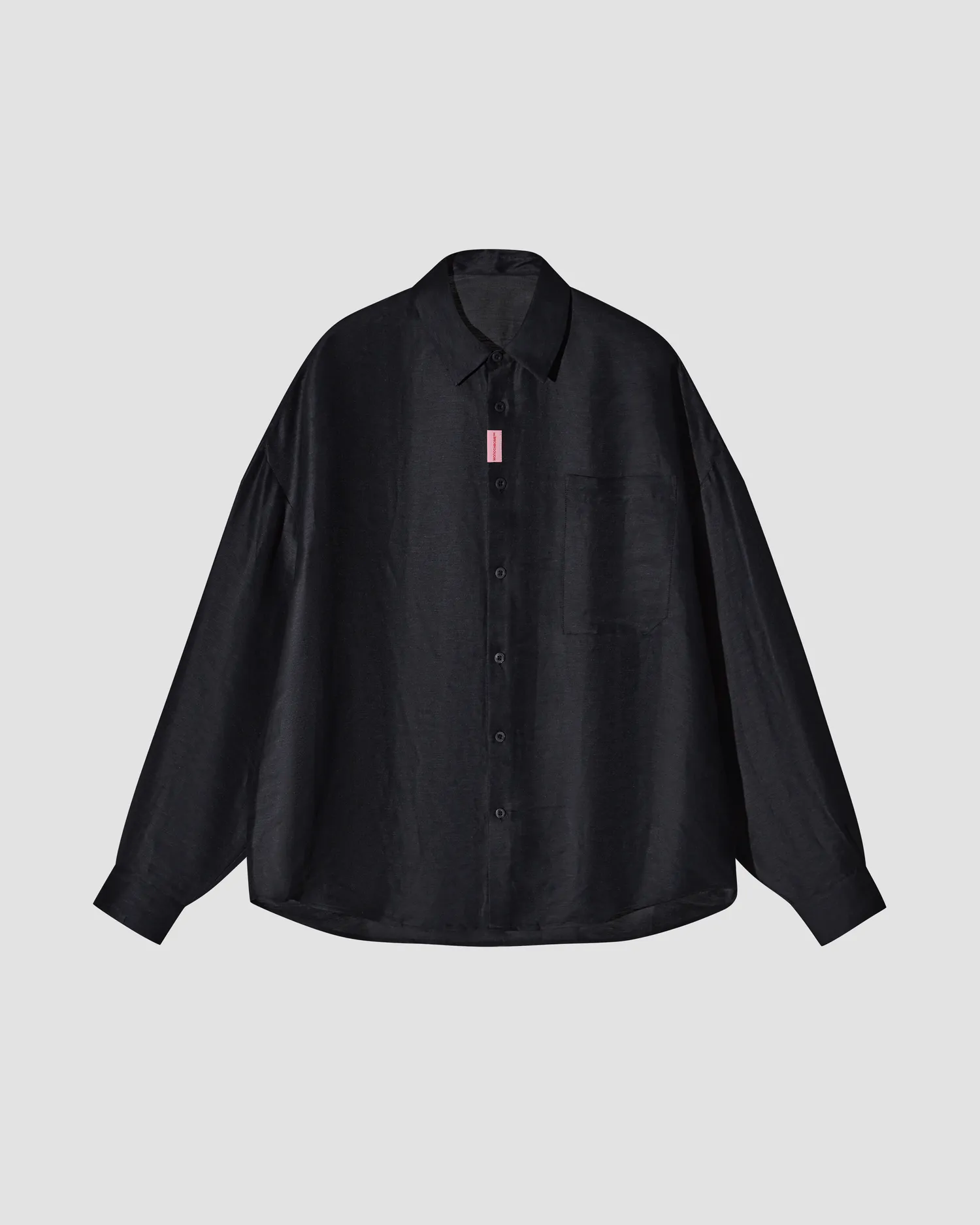 Рубашка из смеси льна и шелка. Гладкая, слегка глянцевая фактура. Объемные рукава с манжетами на пуговицах. Застежка на пуговицы. Нагрудный накладной карман. Жаккардовый флажок розового цвета. Упаковка в подарочную коробку.