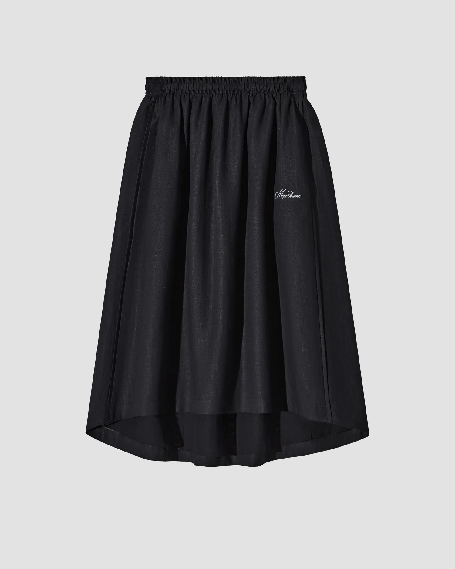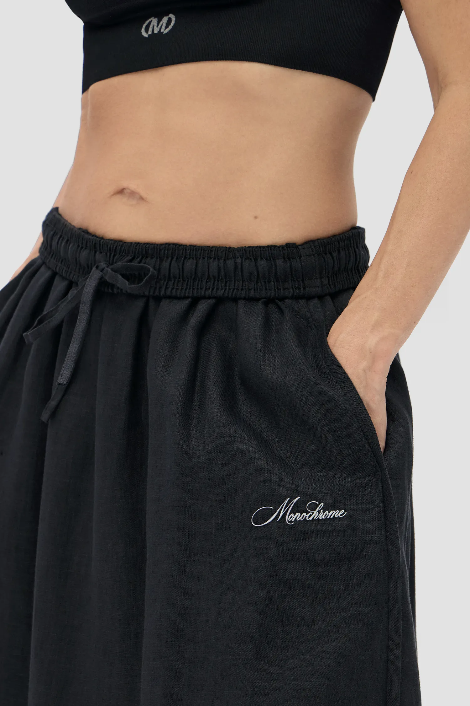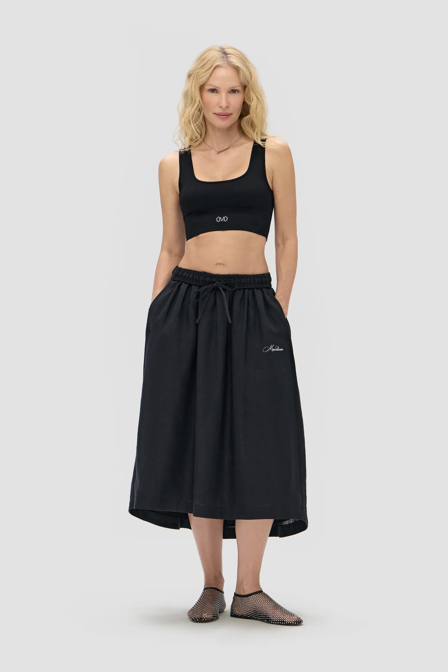 Юбка из 100% льняного полотна свободного кроя. Скрытые карманы в боковых швах. Удлиненная задняя часть. Рельефный логотип MONOCHROME в области бедра. Упаковка в подарочную коробку. Сделано в России на собственной мануфактуре MONOCHROME.