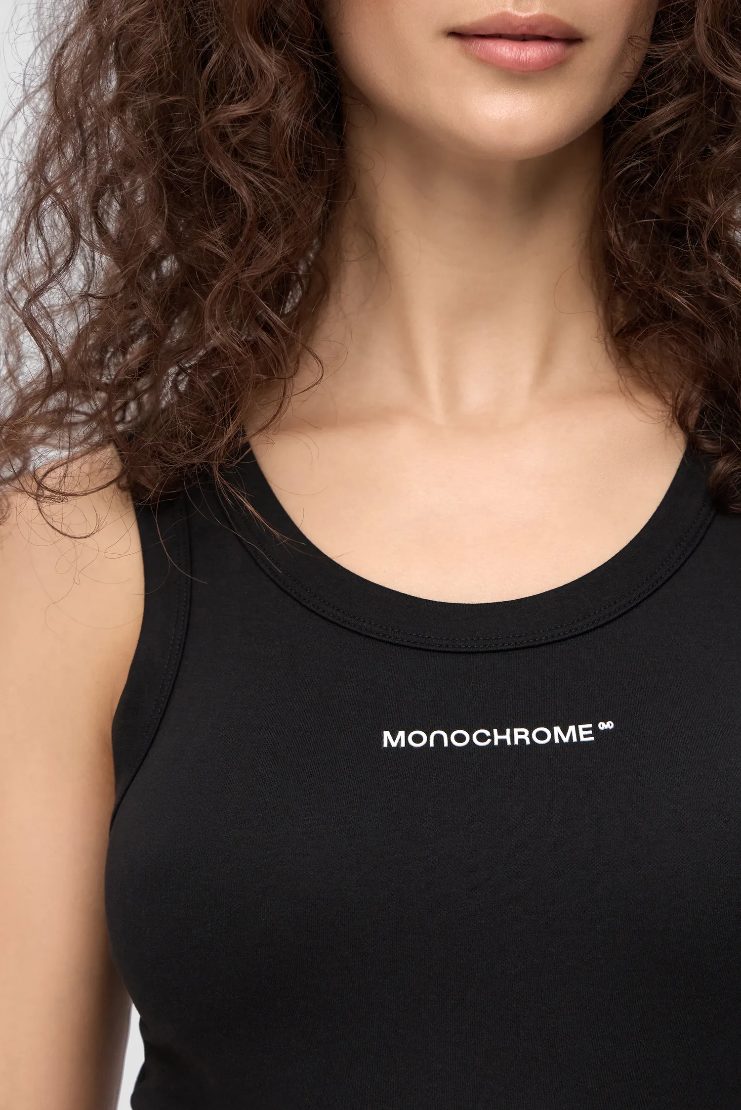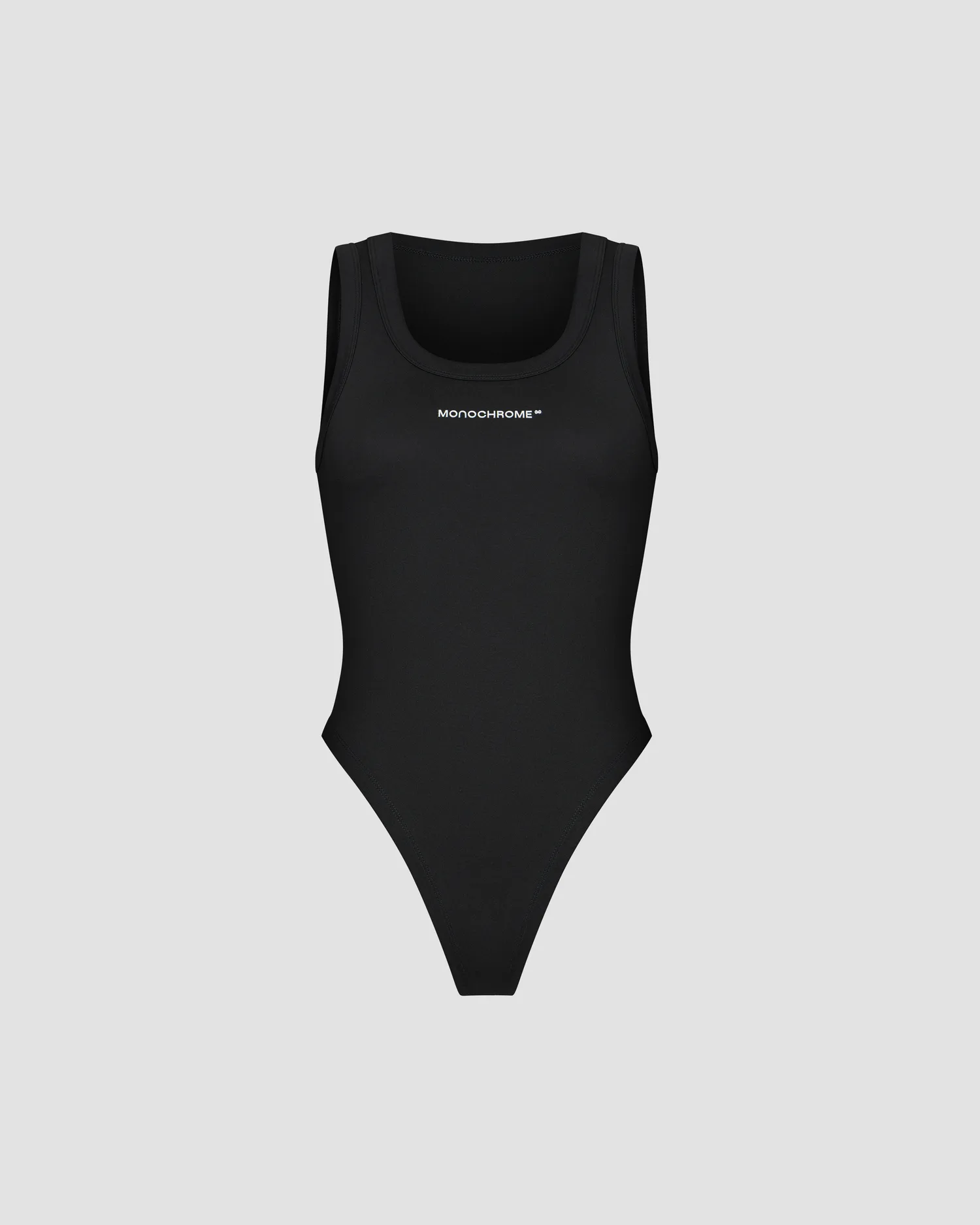 Боди черного цвета с широкими бретелями из эластичного смесового хлопка. Гладкая текстура ткани. O-образный вырез. Ластовица застегивается на кнопки. Рельефный логотип MONOCHROME на груди. Упаковка в коробку для белья. Для изделий линейки UNDERWEAR используется модал, получаемый из эвкалиптовой древесины. Изделия из этого материала отличаются особой мягкостью и приятно ощущаются на теле.