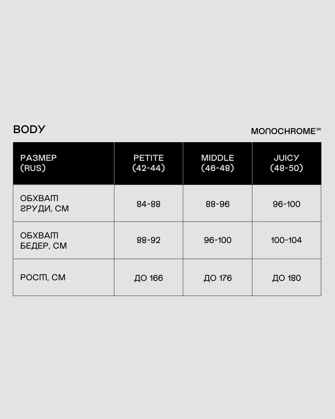 Указанные размеры являются стандартными и могут варьироваться в зависимости от индивидуальных особенностей фигуры. Эластичная ткань белья адаптируется к разным типам телосложения, поэтому посадка может отличаться.